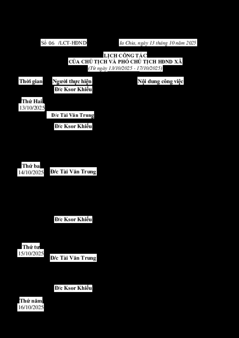 Lịch công tác của Lãnh đạo HĐND xã Ia Chia tuần (từ 13.10.2025-17.10.2025) 13/10/2025, 15:36:26 - Lượt xem: 1 Tweet Thêm vào danh sách Báo xấu Thông tin tài liệu Lịch công tác của Lãnh đạo HĐND xã Ia Chia tuần (từ 13.10.2025-17.10.2025)