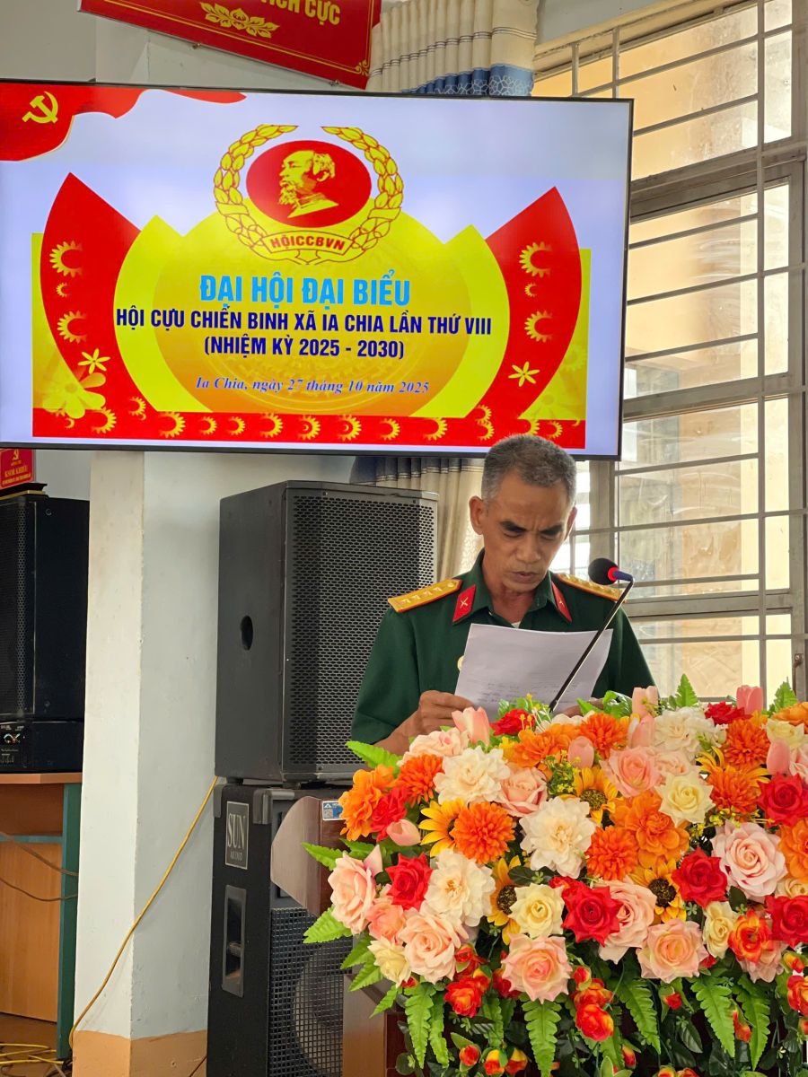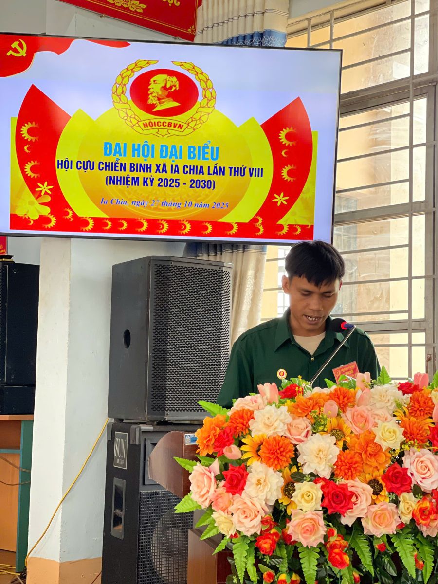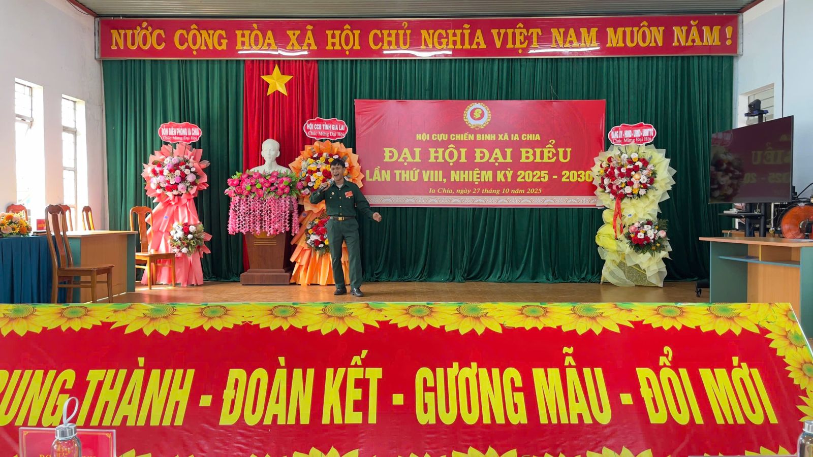 Chiều 26/10, Hội Cựu Chiến binh xã Ia Chia long trọng tổ chức phiên trọng thể Đại hội đại biểu lần thứ VIII, nhiệm kỳ 2025–2030. Dự và chỉ đạo Đại hội có đồng chí Rơ Lan Vinh - Phó Bí thư Thường trực Đảng uỷ; đồng chí Rơ Lan Gâu, Phó Chủ tịch UBND xã; Đồng chí Nông Hồng Phong - Uỷ viên BTV Đảng uỷ, Chủ tịch UBMTTQ; lãnh đạo đại diện các ban, ngành, đoàn thể xã, Đồn Biên phòng Ia Chia; các công ty, doanh nghiệp đứng chân trên địa bàn và 50 đại biểu đại diện cho 174 hội viên CCB trong toàn xã.