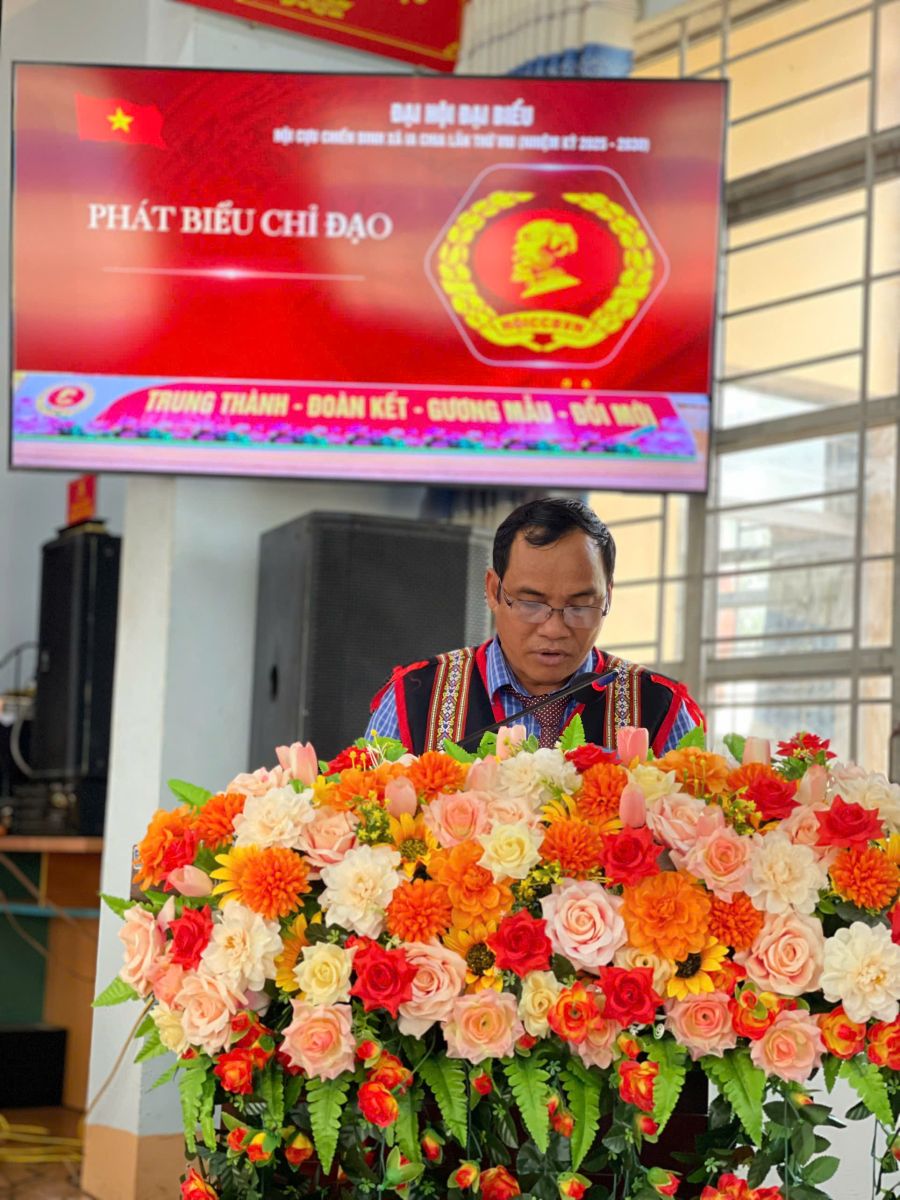 Thay mặt Ban Thường vụ Đảng uỷ xã, đồng chí Rơ Lan Vinh - Phó Bí thư Thường trực Đảng uỷ xã ghi nhận và đánh giá cao tinh thần trách nhiệm, sự đoàn kết, nỗ lực của tập thể Hội Cựu chiến binh xã trong nhiệm kỳ qua, đồng thời biểu dương những kết quả thiết thực mà Hội đã đạt được. Bước vào nhiệm kỳ mới, đồng chí nhấn mạnh Hội cần tiếp tục phát huy truyền thống “Bộ đội Cụ Hồ”, giữ vững vai trò chính trị - xã hội của tổ chức Hội trong đời sống địa phương; đẩy mạnh giáo dục chính trị, tư tưởng, nêu cao tinh thần gương mẫu, kiên định lập trường, góp phần bảo vệ nền tảng tư tưởng của Đảng. Đồng chí cũng yêu cầu Hội tích cực tham gia các phong trào thi đua, các cuộc vận động, đồng hành cùng chính quyền và nhân dân trong phát triển kinh tế – xã hội. Bên cạnh đó, cần quan tâm xây dựng tổ chức Hội vững mạnh toàn diện, chú trọng phát hiện, bồi dưỡng và giới thiệu hội viên ưu tú cho Đảng xem xét, kết nạp; chủ động phối hợp với các đoàn thể, nhất là Đoàn Thanh niên, trong công tác giáo dục truyền thống và xây dựng môi trường văn hóa, đoàn kết trong cộng đồng. Đồng chí tin tưởng rằng, với tinh thần đoàn kết, trách nhiệm và truyền thống cách mạng, Hội Cựu chiến binh xã sẽ tiếp tục phát huy vai trò tiên phong, gương mẫu, hoàn thành xuất sắc nhiệm vụ, góp phần thực hiện thắng lợi Nghị quyết Đảng bộ xã nhiệm kỳ 2025–2030.