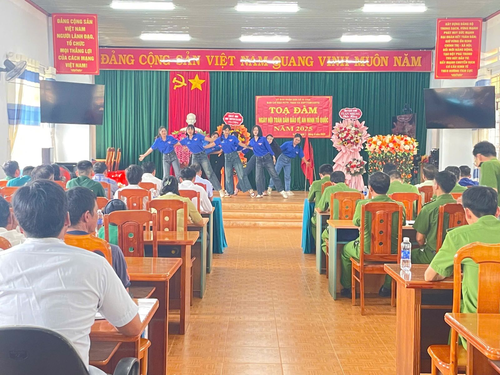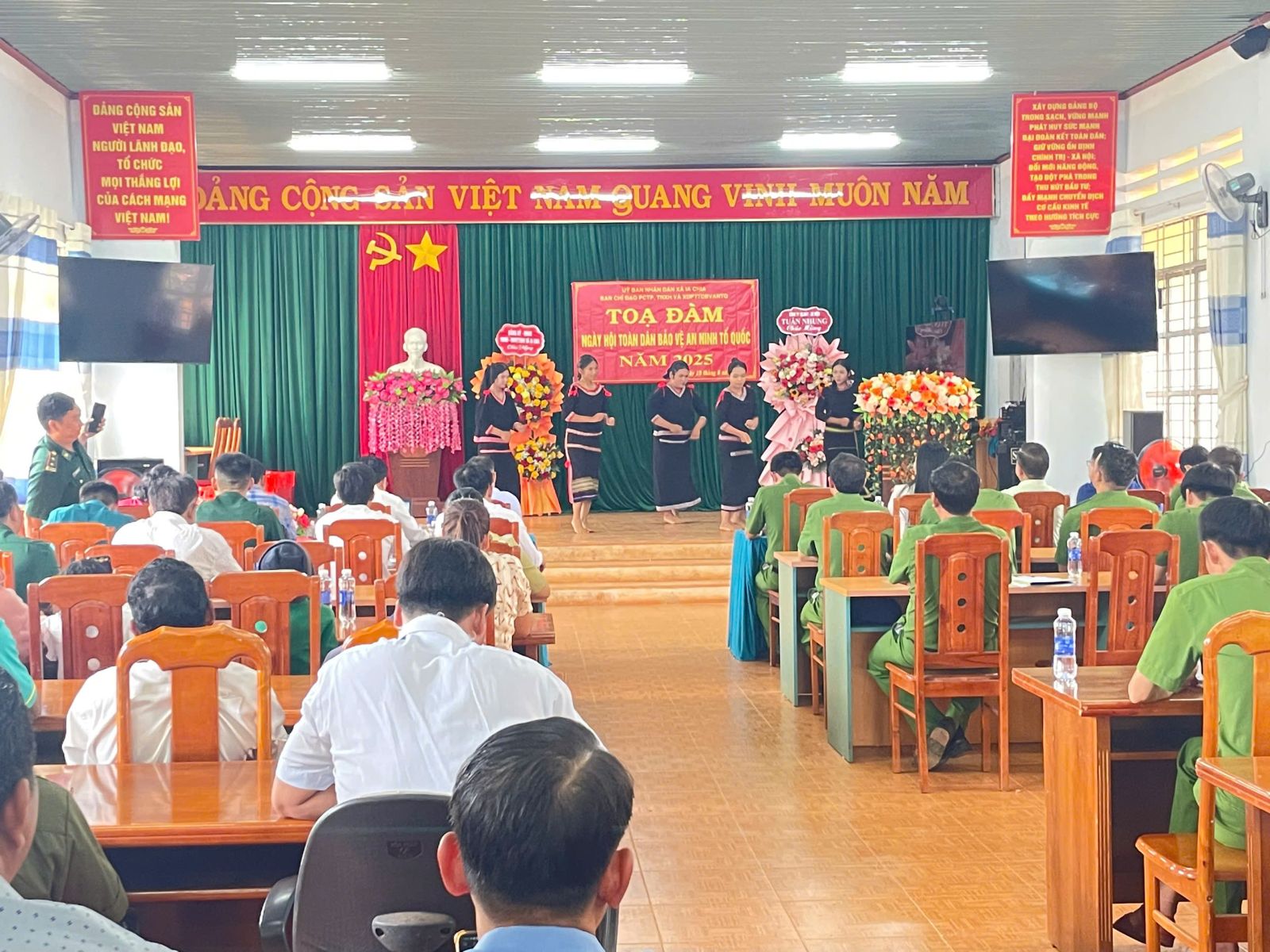 Mở đầu chương trình là các tiết mục văn nghệ chào mừng với điệu nhảy sôi động của các bạn đoàn viên thanh niên; màn múa vũ đạo trong trang phục truyền thống của người JRai. Sau nội dung khai mạc, các đại biểu tham dự được ôn lại lịch sử hình thành Ngày hội toàn dân bảo vệ an ninh tổ quốc, được lắng nghe ý kiến chia sẻ của lãnh đạo Đảng ủy xã và tham luận của các đại biểu tham dự.